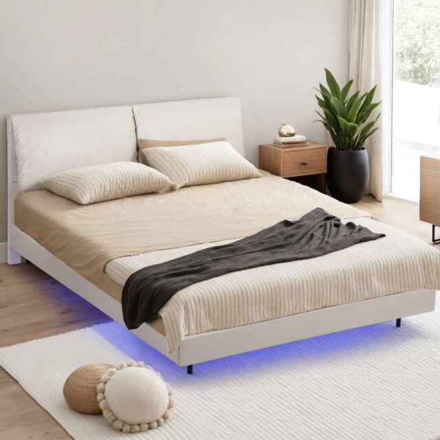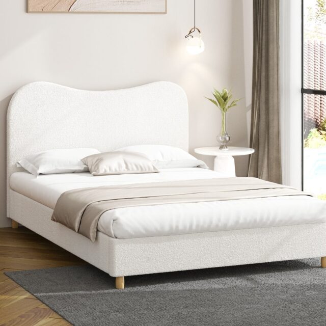 Rest easy in comfort and style with the Zora Bed Frame—a perfect combination of durable hardwood construction and luxurious beige faux linen upholstery. Designed to provide exceptional support and long-lasting durability, this bed frame ensures a peaceful night’s sleep while elevating your bedroom décor.